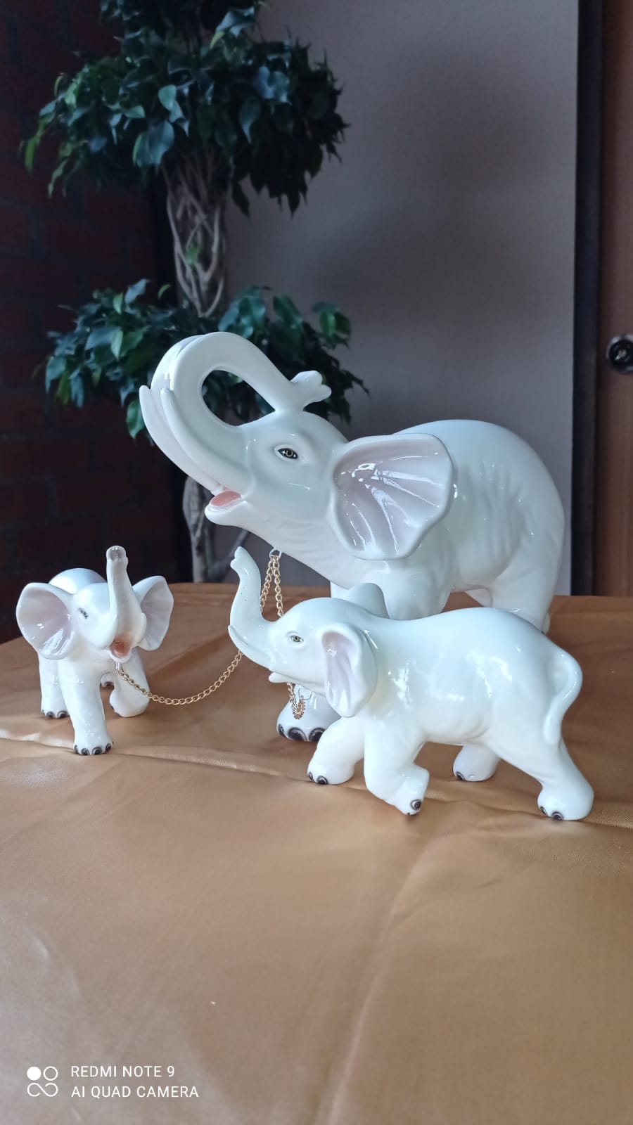 Juego de 3 piezas de elefantes, en color blanco acabado fino. Precio en Bs.